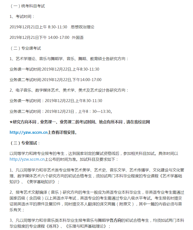 二、四川音乐学院 2019 年硕士研究生招生复试安排