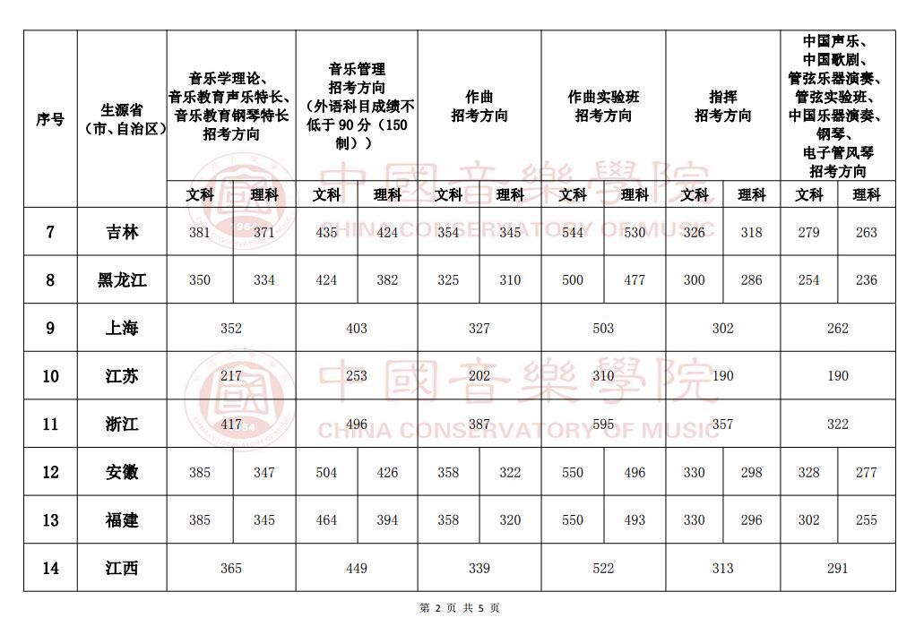 二、中国音乐学院2019年校考分数线