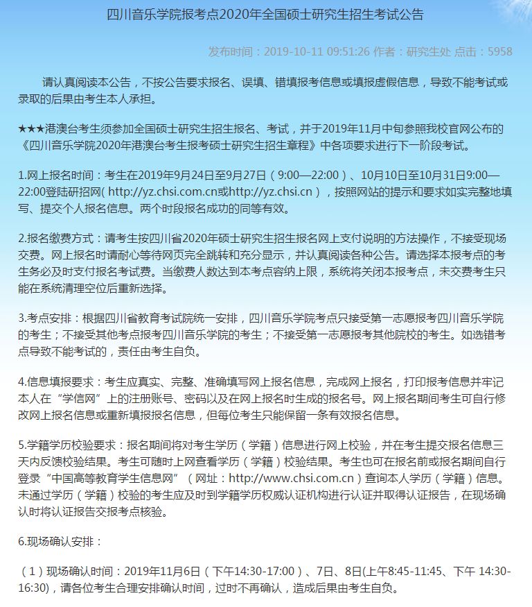 二、四川音乐学院报考点(2020年)全国硕士研究生招生考试公告