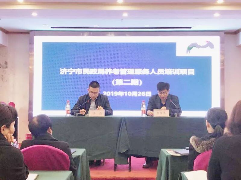 10月26日,济宁市养老管理服务人员培训项目第三期——暨养老护理员理论与实操培训班第二期开班仪式如期举行,本次开班仪式由山东颐臻养老服务培训学校副校长李磊主持。济宁市民政局养老服务科布留宪科长出席开班仪式并讲话。在开班仪式中布科长做了开班动员讲话,传达了济宁市民政局对广大养老从业者的关怀与慰问,并对学员学习进行勉励,鼓励大家珍惜本次学习机会,为日后养老发展贡献自己一份力量。接下来由颐臻养老服务职业培训学校副校长李磊对本次培训会务纪律做了进一步强调,着重向大家介绍了山东颐臻养老服务职业培训学校的发展历程及主要业务简介。会后全体学员跟与会领导进行了合影留念。