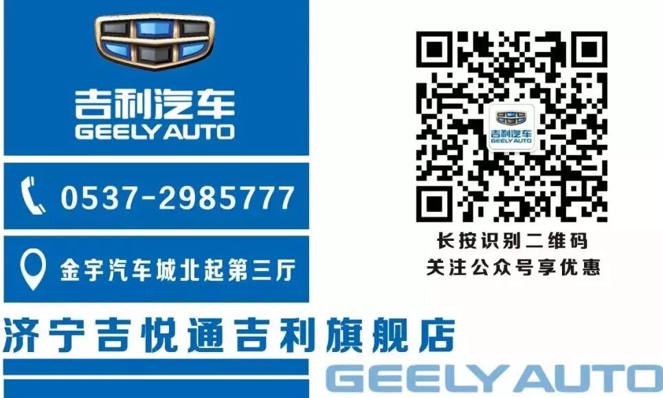 欢迎关注济宁吉悦通微信服务号!实时掌握最新优惠活动信息,即时分享各类热门话题,全面了解养车用车实用技巧!吉利,开创世界汽车安全技术新格局!买车就买吉利车,买吉利,到济宁吉悦通,服务更专业,价格更实惠!