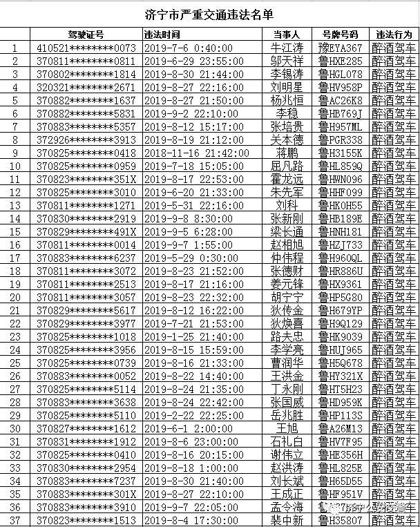 将近期的因危险驾驶被吊销驾驶证的驾驶员曝光