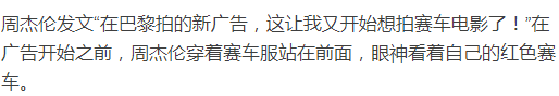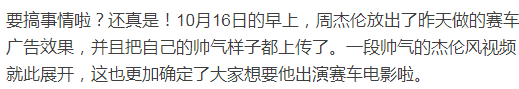 最新报道:周杰伦放出最新赛车广告,网友集体喊话:期待你的头文字2D