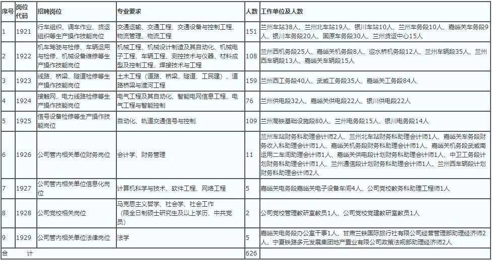 中国铁路兰州局集团有限公司2019年招聘626名大学本科及以上学历毕业生公告(二)