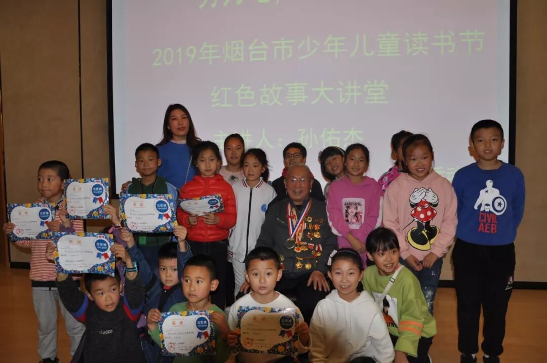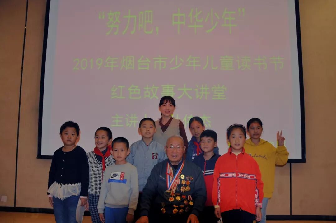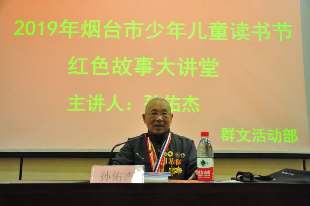 “弘扬爱国精神,争做中华好少年”,10月26日上午,烟台市青少年宫举行烟台市少年儿童读书节系列活动之红色故事大讲堂。94岁高龄的老英雄、《烟台日报》原副总编孙佑杰走上讲台,他用自己传奇的经历和砥砺奋进的一生,鼓励青少年要心怀理想、热爱祖国、勤于学习。来自市区200余名少年儿童、学校教师及家长聆听了讲座。