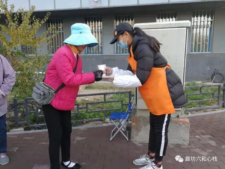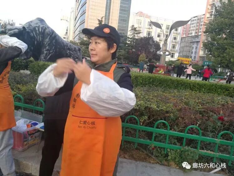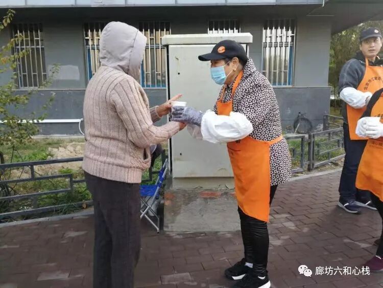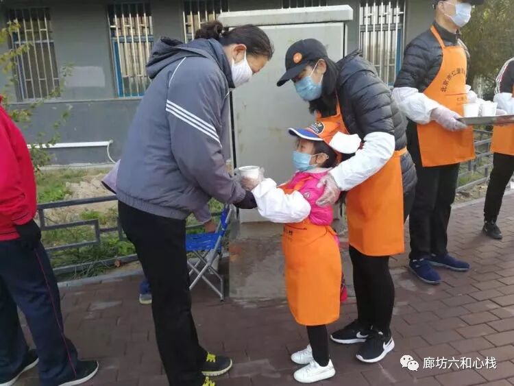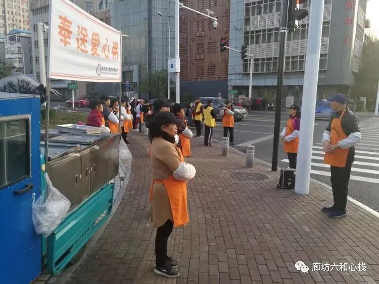 今天奉粥的志愿者们,以非常好的团体形象和平和的心态,向路人们发出衷心的问候
