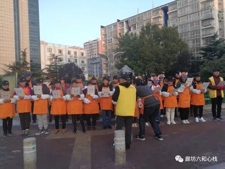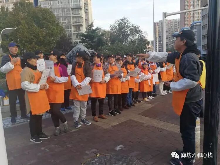 张凤会老师在向志愿者们介绍今天参加熬粥的老师们并安排奉粥岗位“……举止动作表现了心灵的状态……”宗旨是让爱传递,理念是行为的准则。志愿者老师们在重温志愿者培训理念