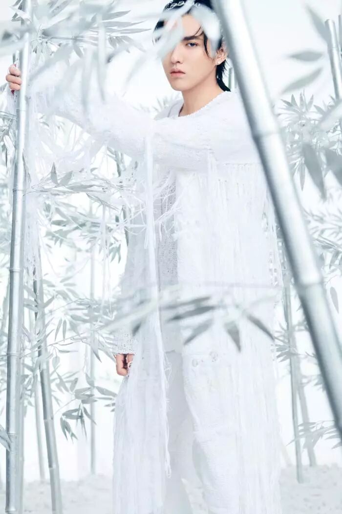 吴亦凡的这组写真拍摄的也是相当给力,照片以白色调为主。白色的背景,吴亦凡身穿一身白色的衣服,给人一种“少女感十足”的感觉。