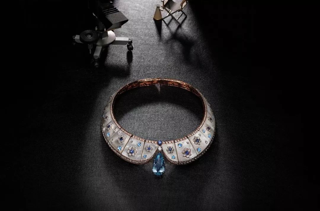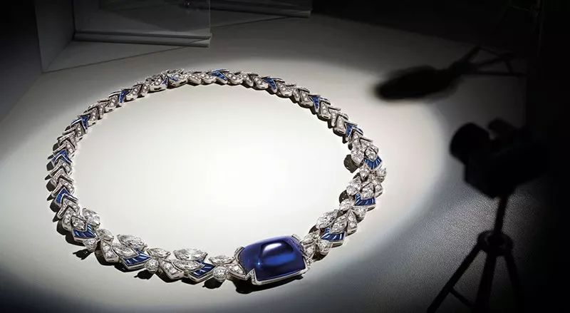 比如这款采用了经典的凸型蛋面切割蓝宝石,单颗就重达70.22克拉的项链,就被命名为“台伯河上的好莱坞”——没错,就是致敬电影黄金时代的罗马。