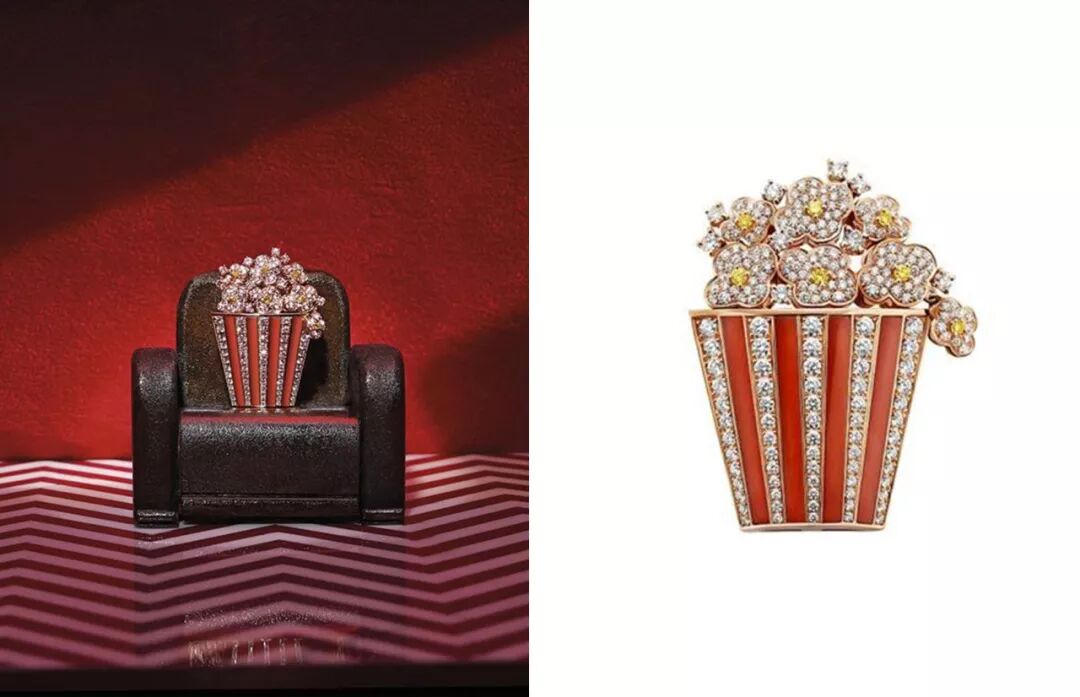 骨子里还有幽默性质的宝格丽,这次还推出了一款 Pop corn 爆米花胸针,采用了特色切割的珊瑚和钻石。