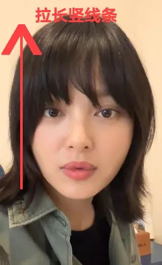 ◎ 原则一,注意发型的分割线,突出脸型的竖长型线条,让脸型接近鹅蛋脸型。