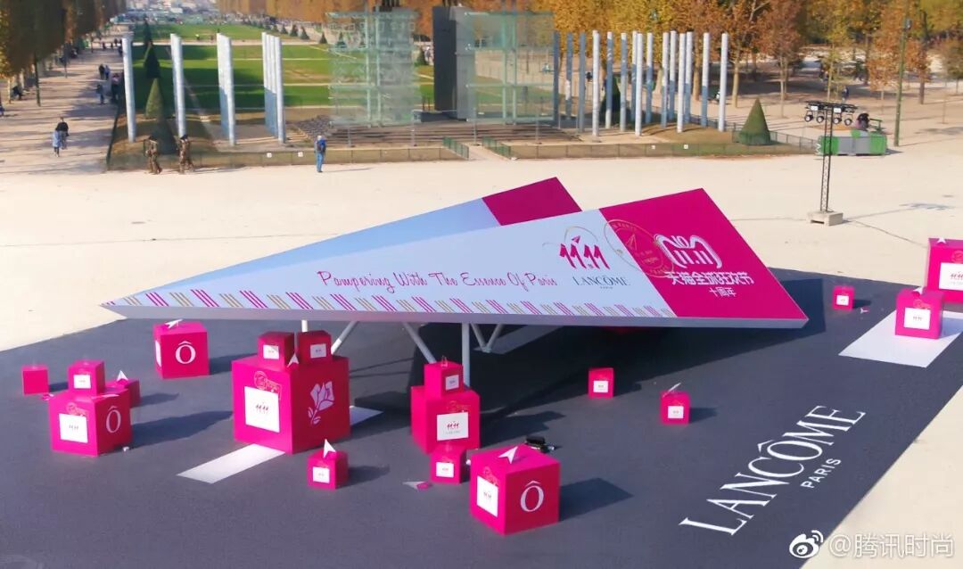 去年双十一,一架粉白相间的巨型纸飞机携带精美法式礼盒空降巴黎战神广场,它停靠在埃菲尔铁塔下方与这座梦幻般的城市融为一体。这还是百年以来战神广场首次开放合作,却仅凭艺术和商业的首次通融便创造了双十一创意营销的高亮曝光奇迹。超过6000w+总媒体曝光量,让兰蔻一举斩获2018年双十一美妆品牌销售排名NO.1。