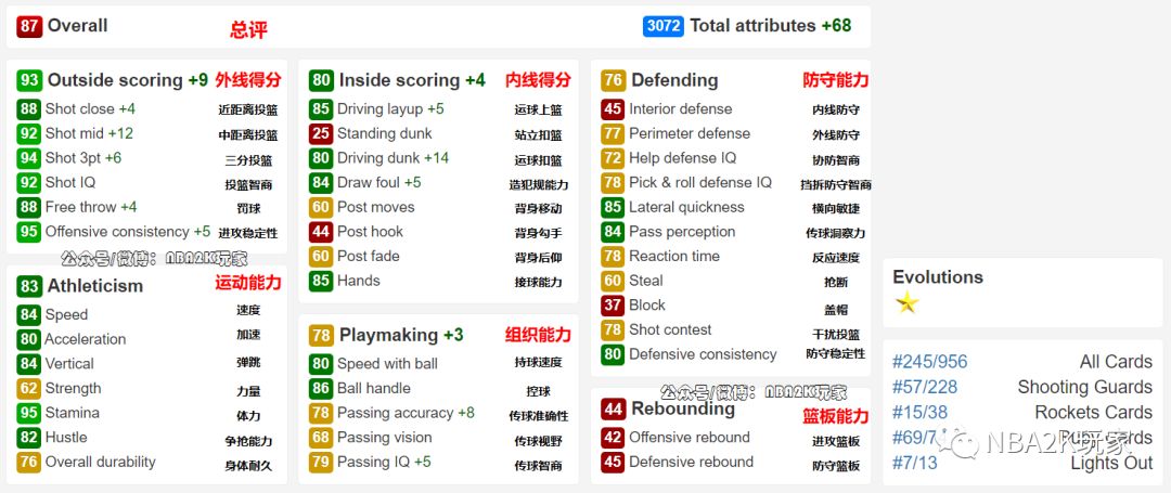 升级到钻石后的科尔中距离为95,三分和克莱一样高达98!内线进攻直接拉到底,除了切入上篮之外其余都别想了;传控上88的控球+89的运速相当不错。