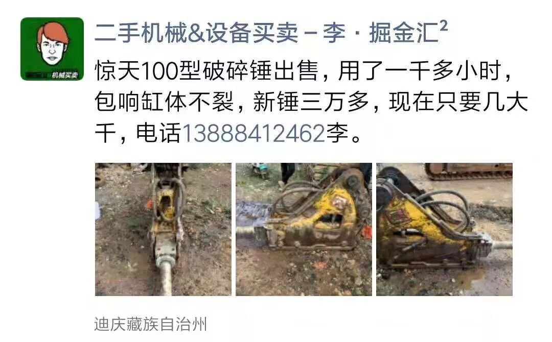 惊天100型破碎锤出售,用了一千多小时,包响缸体不裂,新锤三万多,现在只要几大千,电话13888412462李。