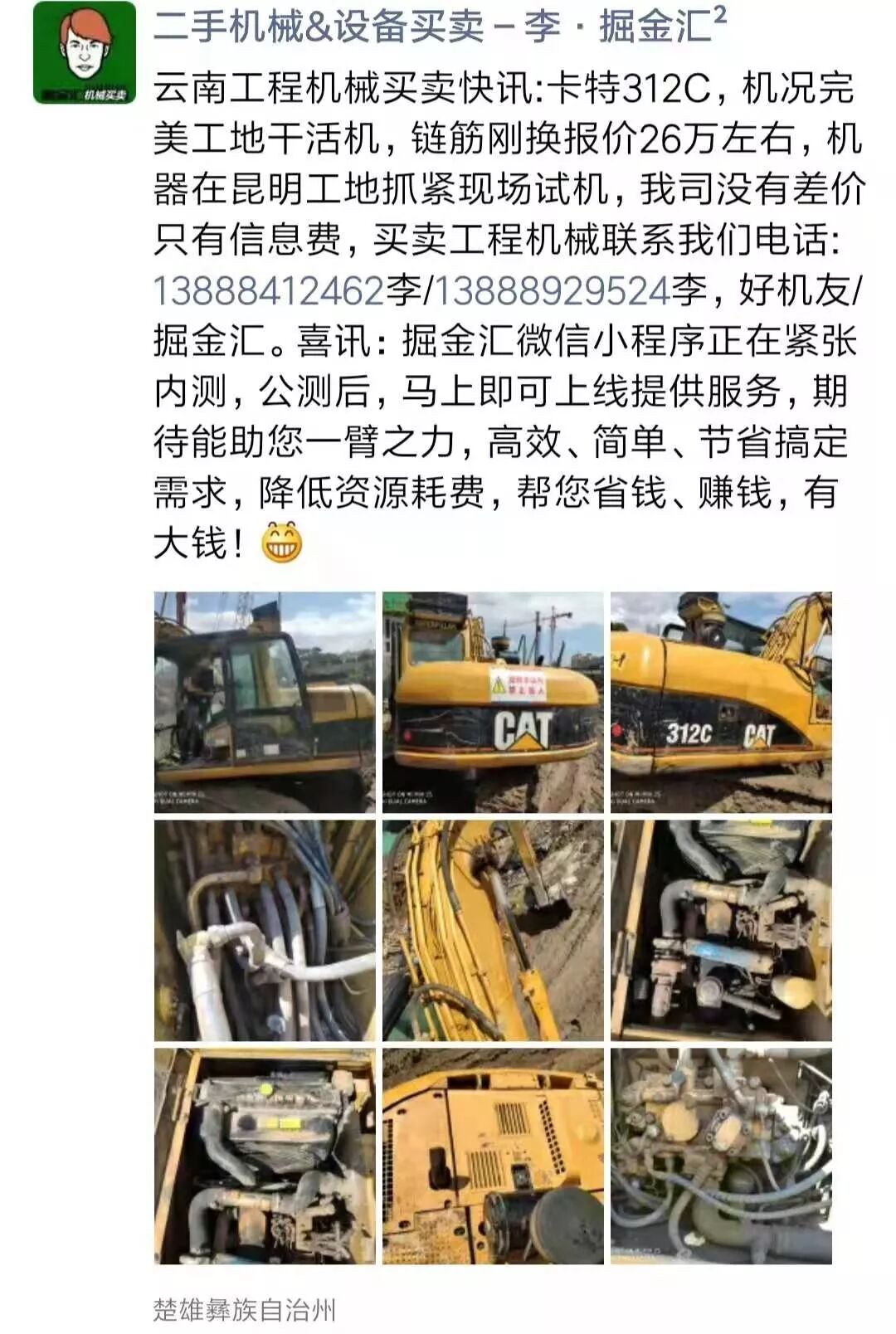 卡特312C,机况完美工地干活机,链筋刚换报价26万左右,机器在昆明工地抓紧现场试机