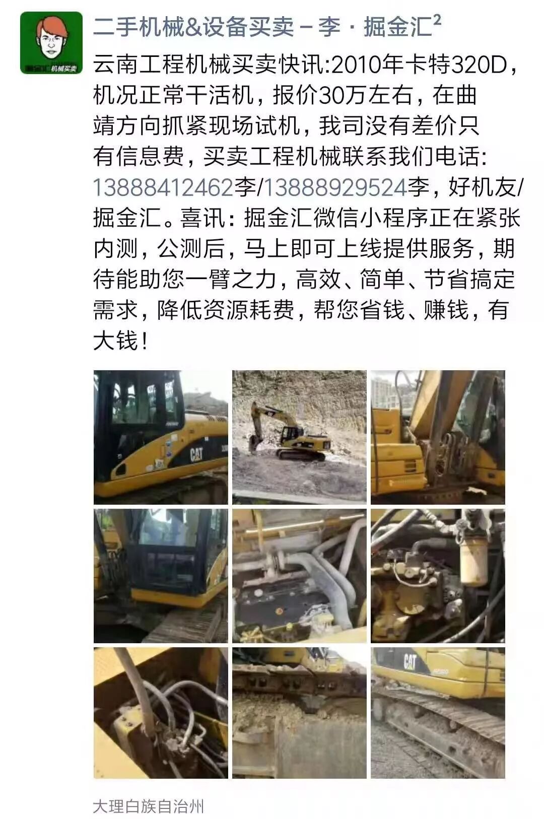 2010年卡特320D,机况正常干活机,报价30万左右,在曲靖方向抓紧现场试机