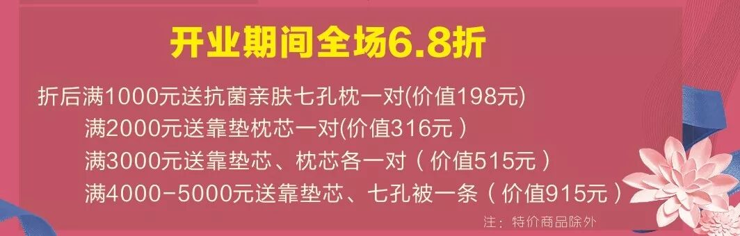 折后满4000元以上送靠垫芯一对、七孔被一条(价值915元)