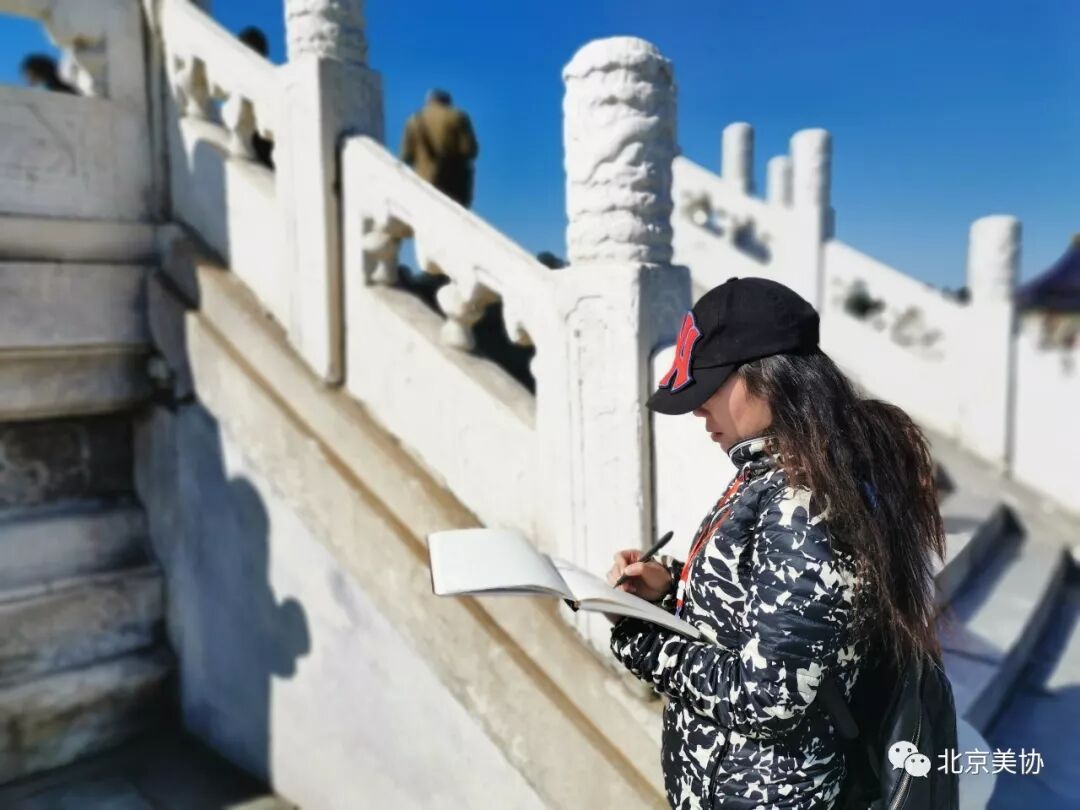 本次活动分为两个部分,首先由讲解老师为艺术家们详细介绍了天坛的历史脉络、文化内涵,甚至一些野史典故。辅助艺术家们更深入的了解天坛的各个方面,为之后的艺术创作积累了深厚的、多元的文化储备。而后艺术家们各自寻找自己感兴趣的建筑角度进行写生创作,由此获取了更加精准丰富的创作素材。