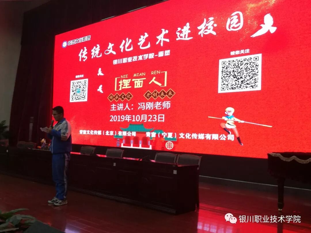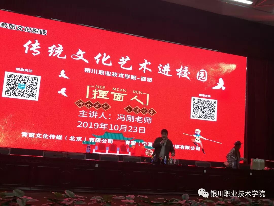 为贯彻落实习近平总书记关于青少年“扣好人生的第一粒扣子”的重要指示精神,为学生搭建一个学习、感悟、弘扬传统文化的舞台,增强自觉传承弘扬中华优秀传统文化的意识,2019年10月24日下午2点,银川职业技术学院多功能报告厅开展了“中华文化,薪火相传”中华传统文化进校园活动。此次活动是由院学生处组织,邀请了宁夏本土捏面艺术大师冯刚老师来院做讲座。全院五百多师生参与本次活动。