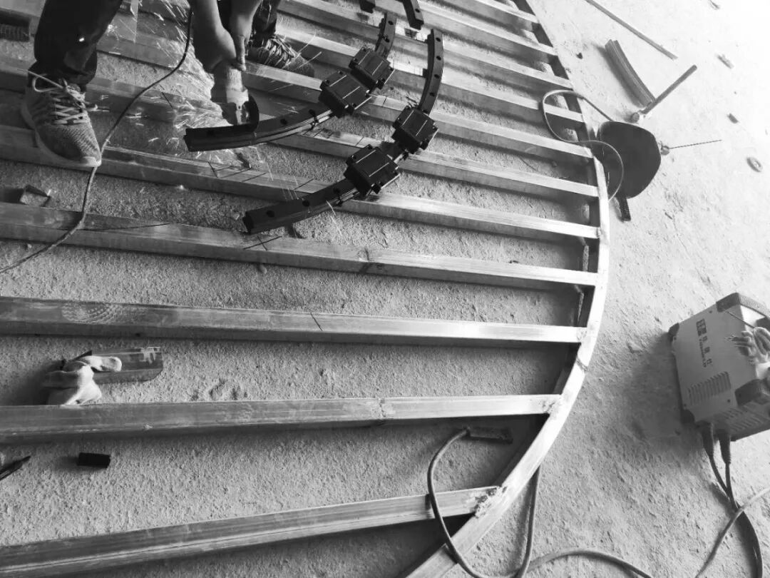圆盘轨道上此次采用得是日本进口THK环形导轨,由于国内许多厂家都达不到设计的要求,在寻找工艺上花费了不少功夫,历经多方寻找,最终找到符合作品设计要求上的进口环形导轨。