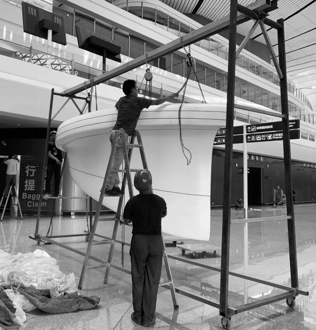 一家单位,三家工厂,十台机器连夜赶工,只为了同一个事情。从收到制作通知,到安排制作,制作厂主动腾出了机器,到最后的运输,以及点对点安装,大家从初识到为同一件事共同努力,目的是能让《一线一城》公共艺术作品能准时“躺”在北京大兴机场。