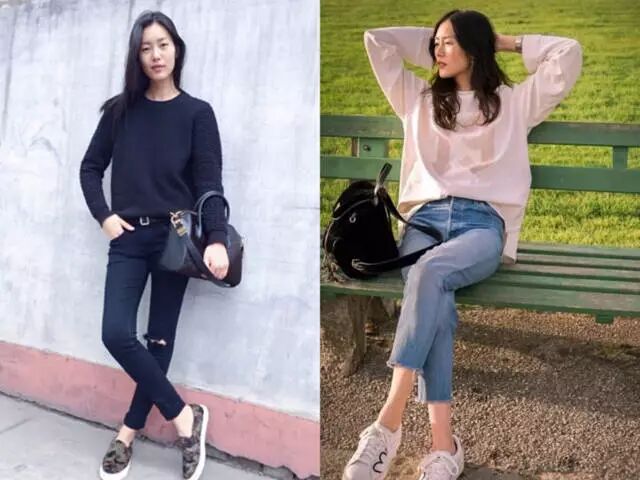 像这种浅色牛仔裤+毛衣的搭配,像个纤瘦的乖乖女同学。