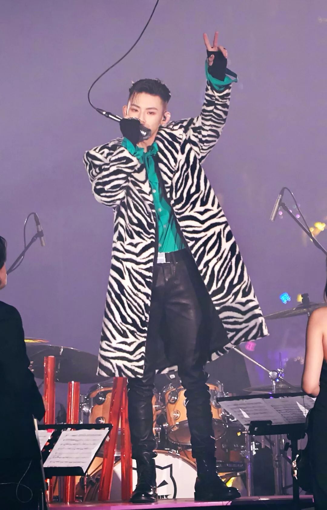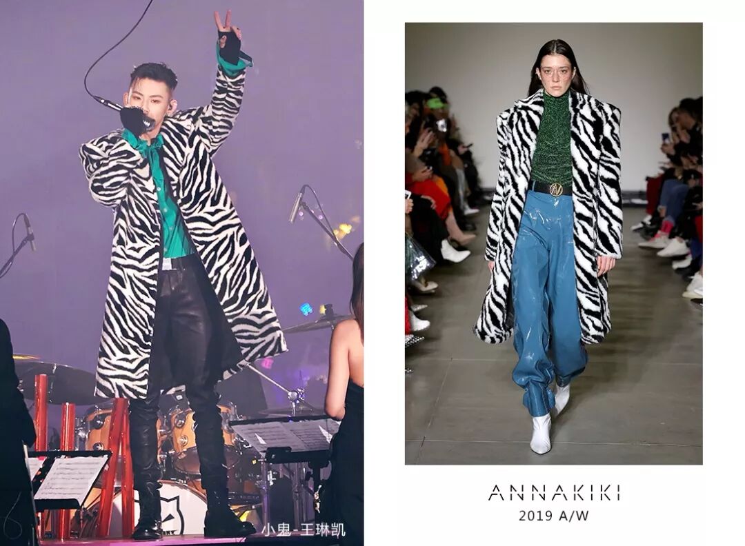 小鬼王琳凯身穿ANNAKIKI 2019 A/W米兰时装周走秀款黑白斑马纹外套搭配湿发烟熏妆,演绎酷帅飒气的鬼式复古时髦混搭!