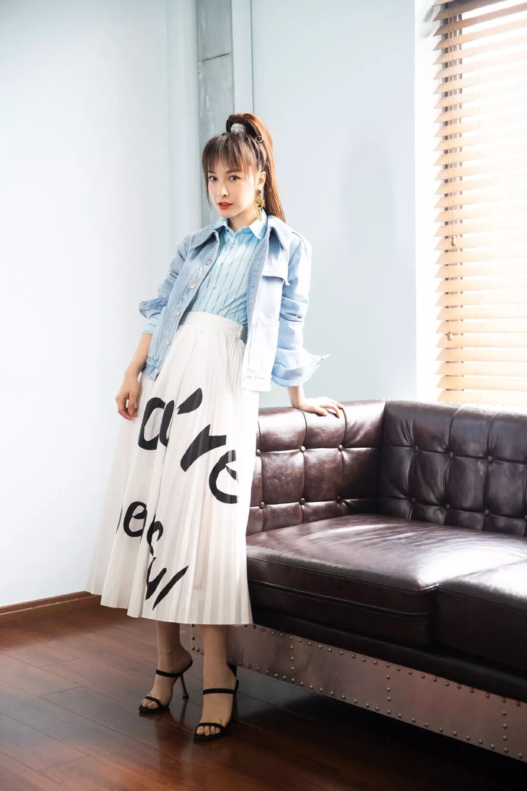 蔡依林身穿ANNAKIKI 2019S/S涂鸦报纸印花牛仔外套,趣味印花和酷感牛仔的结合碰撞出街头时髦感,帅气随性,表现力满分!