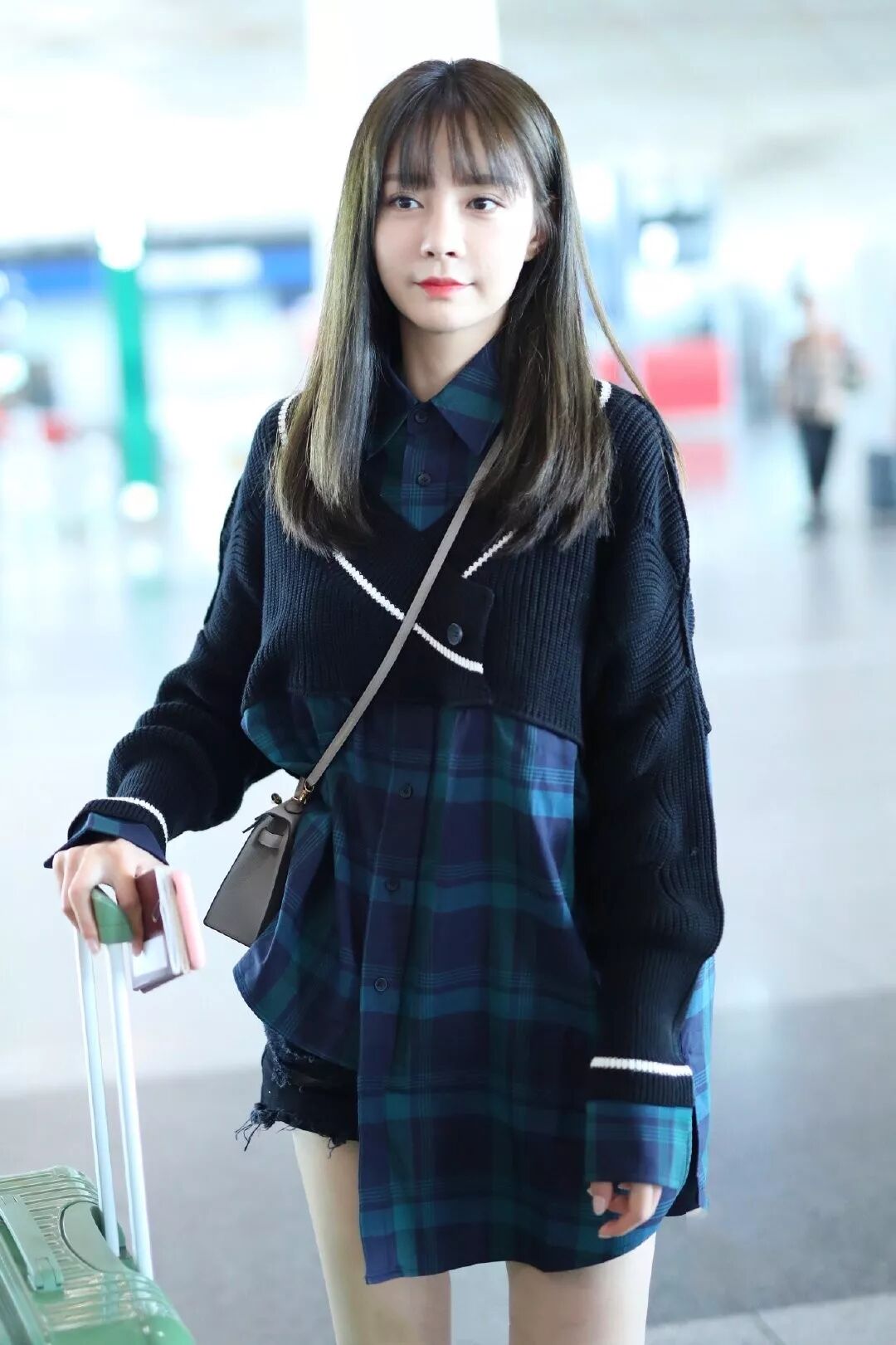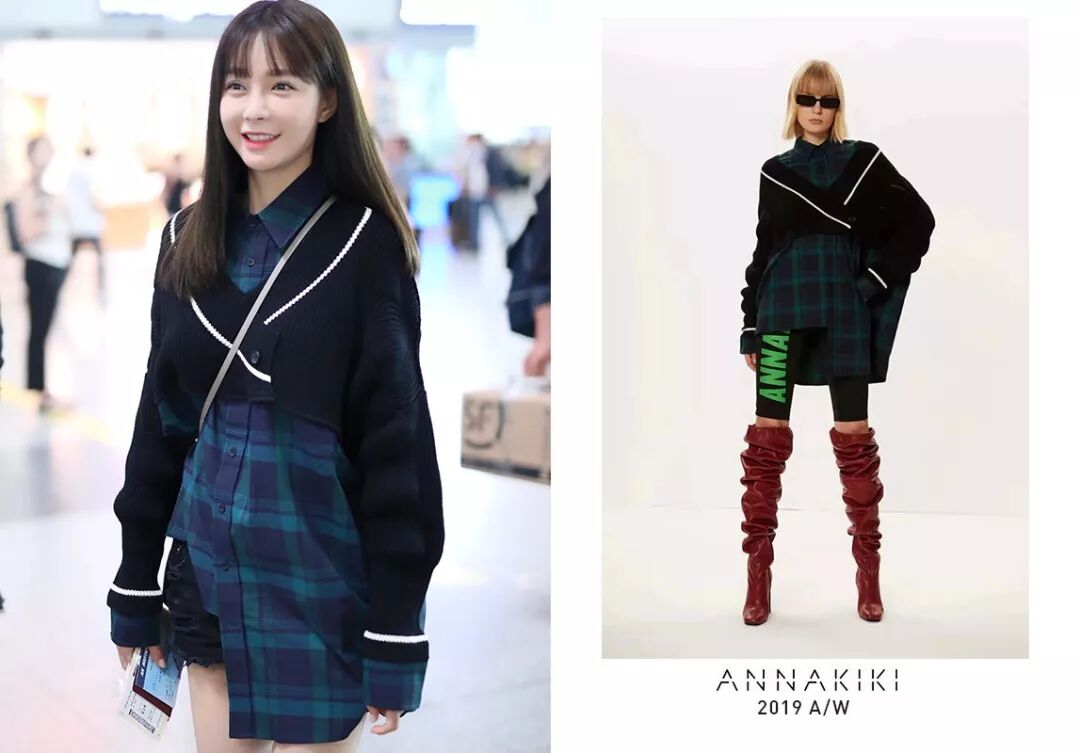 沈梦辰身穿ANNAKIKI 2019 A/W解构格纹衬衫现身机场,融入格纹、撞色等设计元素,将不同材质进行混搭,以个性趣味的装扮,为造型锦上添花!