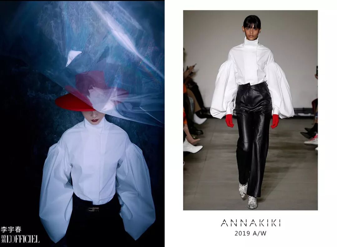 李宇春身穿ANNAKIKI 2019A/W米兰时装周走秀款灯笼袖衬衫及真皮分割长裤登上《时装L'OFFICIEL》,黑与白之间散发诗人的气质和人文关怀!