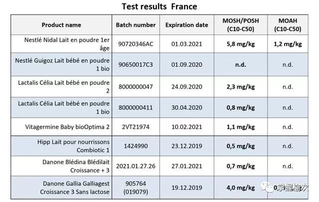根据foodwatch检测报告,该机构“委托3个知名的食品实验室彼此独立执行不同的分析方法。在一半测试的婴儿乳制品中,发现了芳香族矿物油的残留物”,受影响的奶粉分别是: