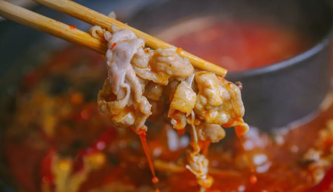 在沸腾的红油锅里比毛肚适应的更好,一口送入嘴中,每一根肚丝上都挂满了汤汁,麻辣味瞬间点燃味蕾,味道更加香浓。