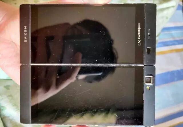 这款折叠手机的型号为NEC MEDIAS W N-05E,属于飘洋过海的洋垃圾,这款手机上市时间为2013年,可见那时就已经有折叠手机的想法了,只是由于屏幕技术不发达,无法做成折叠屏,就只好做成折叠的双屏手机了。