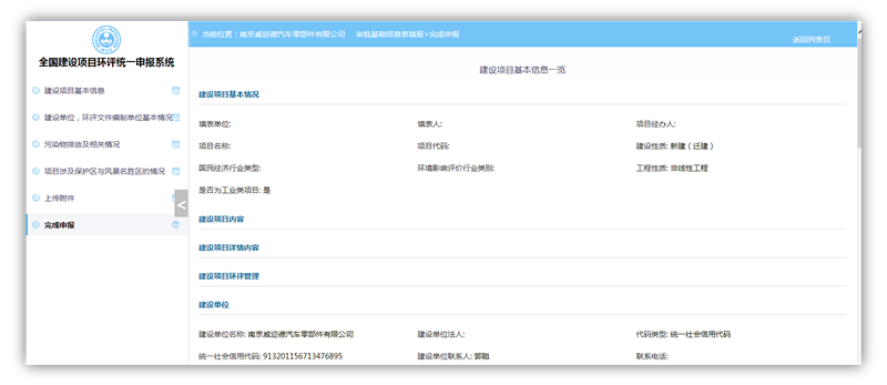 据了解,江苏省是先行试用该平台的试点省份。为切实提升网上政务服务能力,在环境影响评价审批事项上实现“一网通办”,南京市江宁开发区率先上线该平台。近日,在南京市江宁开发区行政审批局工作人员的指导下,南京威迩德汽车零部件有限公司在“全国建设项目环评统一申报信息平台”上成功申报了SuperbNF零部件焊接生产线项目和NMSNF零部件焊接生产线项目的环评。