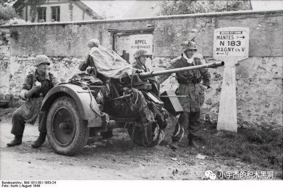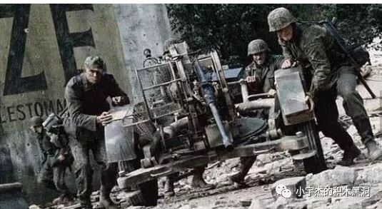 FLAK38*20mm四联高炮也是从单管FLAK38*20mm慢慢发展而来的,我们在《拯救大兵瑞恩》中看到的就是步兵在掩护装甲部队作战时出现的单管FLAK38*20mm