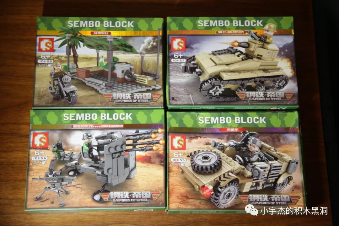 大家好,今天带来森宝的钢铁帝国系列101155——101158,这套一共四盒,一款小场景,一款豆坦克(至于为啥叫“豆”等会我给大家讲讲)一款德军高射炮,一款吉普车