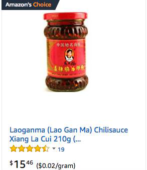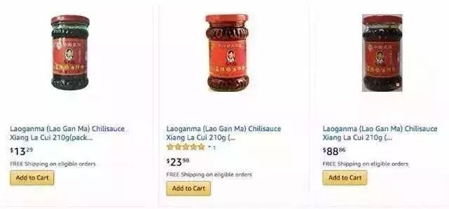 国内十块钱搞定的东西,亚马逊上竟标价15美元,甚至美国奢侈品电商Gilt还曾把老干妈奉为尊贵调味品。就算是在打折季中,限时抢购价也要11.95美元两瓶(约人民币37元一瓶)。