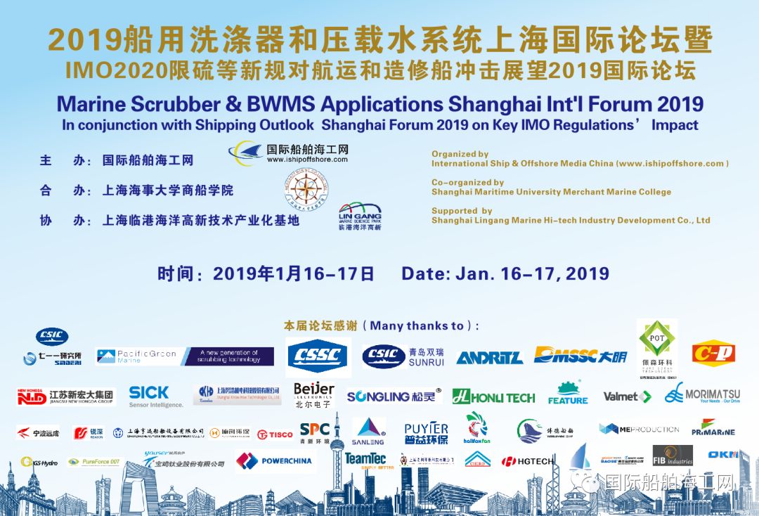 针对全球船用脱硫洗涤塔热和船舶技术的应用现状及发展趋势,更大规模、更高规格的“第三届2019国际船用洗涤塔和压载水系统产业上海峰会 ”暨“第六届2019船舶新技术与投资上海国际峰会”定于2019年11月30日-12月1日将在上海市华美达大酒店举办 。届时将有超过300多位来自中国、英国、美国、加拿大、德国、丹麦、挪威、瑞典、日本、法国、荷兰、比利时、芬兰、新加坡、马来西亚、韩国等国的船东、船厂、洗涤塔厂商、压载水厂商、配套厂家、设计和投资单位等参加,汇聚上海,在12月3-6日的上海国际海事展前3天,交流、探讨和分享全球限硫令下船舶脱硫洗涤塔和压载水系统应用等的机会、挑战、合作等。