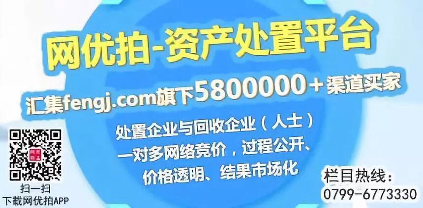 【起拍价】:1、废铝约8吨,起拍价5000元/吨;2、修炉车(约15t)一台,起拍价3.5万;3、吊钩桥式起重机,起拍价35万;4、烧结炉条约30吨,起拍价3200元/吨;5、耐磨滑块约4吨,起拍价18000元/吨;6、空调约5吨,起拍价:4000元/吨。
