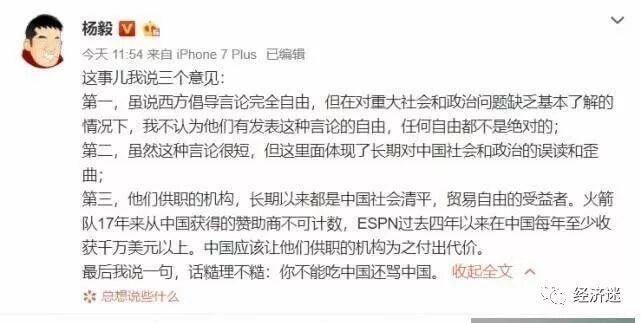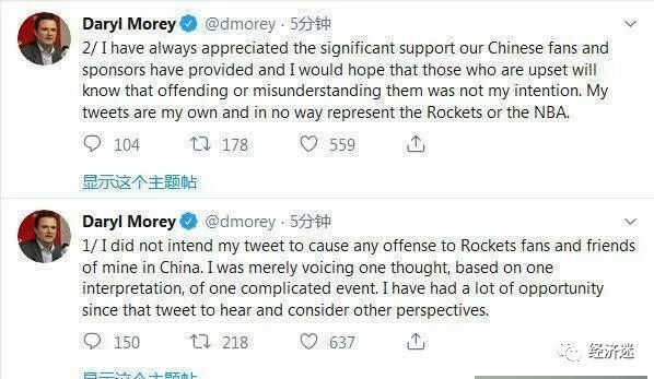 但此时,休斯顿火箭队和NBA的挽救时间还完全来得及,但他们不仅错过了,还将事情推向了最坏的方向,先是莫雷再次发表声明,声称自己的言论值得商讨,但仅代表个人,不代表休斯顿火箭队和NBA,言下之意就是:我就是这个看法,而且不代表其他人,毫无道歉之意