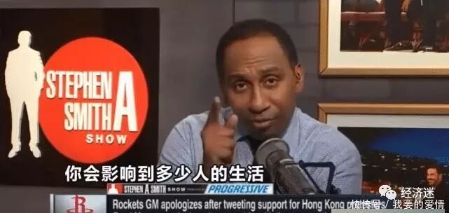 史密斯在直播中对莫雷说到,你的行为不再代表个人,你有想过其他人吗?例如姚明,你已经伤害的远远不止自己,休斯顿火箭队与中国20年来的关系,因你几乎破裂!