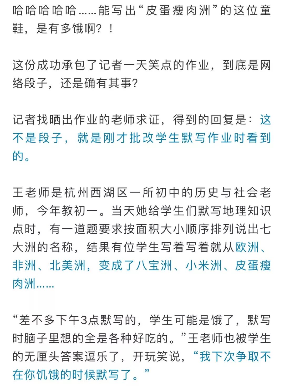 小学和初中正是孩子们长身体的黄金期,特别容易饿,很多娃课上到一半,就能听见肚子咕咕响,恨不得画饼充饥。据老师们反映,类似的故事每个班都有,有的学生饿坏的时候,不仅手控制不住,写的全是吃的,嘴巴也不听使唤,脑子里想到的吃的全都蹦出来,引来一串哭笑不得的口误:
