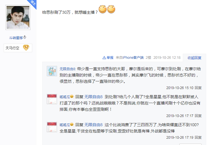 神豪摩尔今天发了一个动态,点名说心悦女主播思彤,之前他对思彤还是很支持的,现在应该是闹掰了。