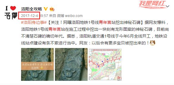 作为古都,洛阳地下瑰宝集聚那是必然,更何况这已经不是第一次在青年宫地下挖出宝贝了!为什么这么说呢?其实早在2017年年底的时候,洛阳地铁1号线青年宫站在施工过程中,就曾挖出过一块刻有龙形图案的石碑。▼