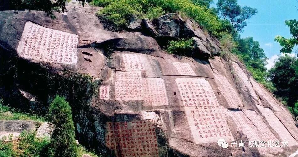 福建九日山摩崖石刻九日山摩崖石刻,位于福建省泉州市南安市丰州镇。九日山,风景秀丽,是我国古代海上丝绸之路的东端。据载,晋代衣冠南渡,多沿江而居,常于重阳节(九月初九)到此登高望远,寄托对故土的思念,故得名"九日山"。九日山多巨岩悬崖,分东西北三峰。九日山素有"山中无石不刻字"之誉。自晋代以来历代均有石刻,现仅存北宋至清代摩崖石刻77段、碑刻4方。其中最早的是北宋乾德三年(965年)陈洪进造石佛纪事石刻。最珍贵、最有价值的是宋代的海交祈风石刻(10段)、泉州市舶司活动石刻(3段),记载着北宋至南宋近200年的时间里,船舶冬季出海和夏季归海时官员迎送的盛况等内容。是研究宋代泉州海外交通史的主要实物资料。此外,还有苏才翁、朱熹、蔡襄、王十朋、虞仲房等人的题刻,甚具书法价值。