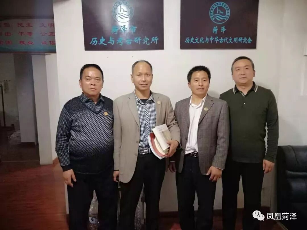 10月21日来自中华《郭氏总谱》编纂委员会副主任郭庆民,老挝共和国华侨郭进,在菏泽雷泽祖源文化研究院院长陈勇行,副院长杨航、秘书长马学民、常务秘书长兼媒体中心主任李金霖的陪同下,先后参拜走访了“郭氏宗祠”、“菏泽市历史与文化研究所”、“古今牡丹园”等地。首先驱车来到位于菏泽市开发区丹阳办事处张花园社区郭楼村郭氏祠堂,在郭氏族人的引领下来自海外郭氏后裔参拜了列祖列宗,参观了“四世一品”牌坊、石碑等、并探讨交流了郭姓子孙现在全球的分布,郭氏祖源家训家风、以及今后海外郭氏宗亲与菏泽文化交流、旅游开发招商引资等事宜深入交换了意见。郭氏后人向来自远方的郭氏宗亲赠送了郭氏族谱并合影留念。