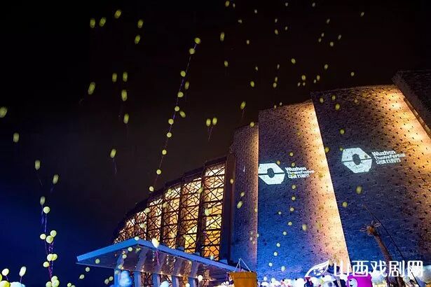 10月25日17点整,古镇嘉年华首次陆水空三线巡游启程,“飞鱼”从元宝湖飞行至乌镇大剧院,完成长达50分钟的预热,开幕式就此揭开序幕。乌镇戏剧节四位发起人陈向宏、黄磊、赖声川、孟京辉邀请开幕大戏《三姊妹》导演尤里·布图索夫、特邀剧目《树》导演尤金尼奥·巴尔巴和世界级戏剧导演铃木忠志共同敲响开幕大锣。