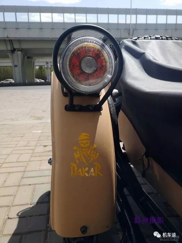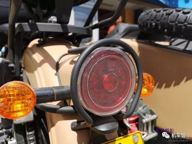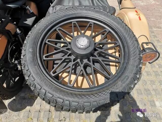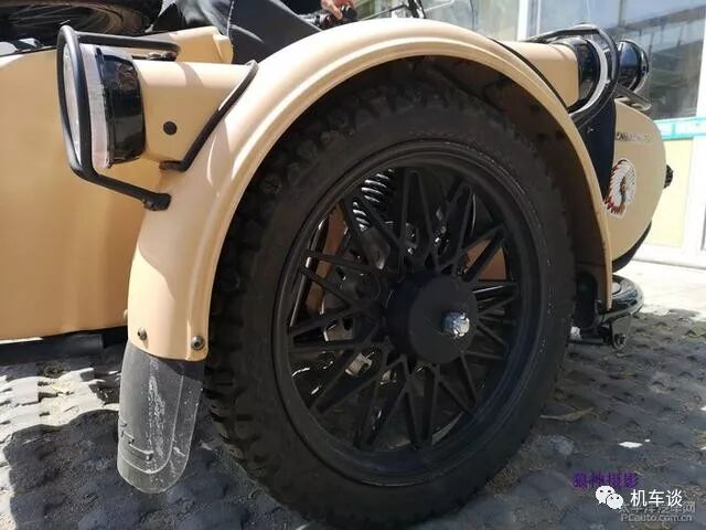 边轮与其他两个车轮尺寸相同,并装配盘式刹车,边斗前后都配有LED形式的示宽灯和右侧转向灯。