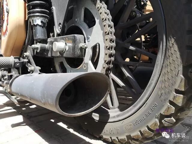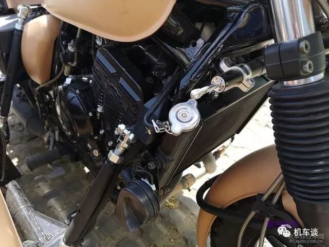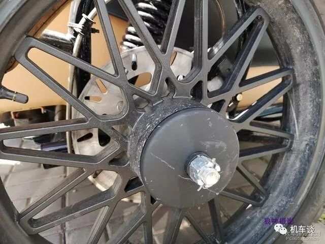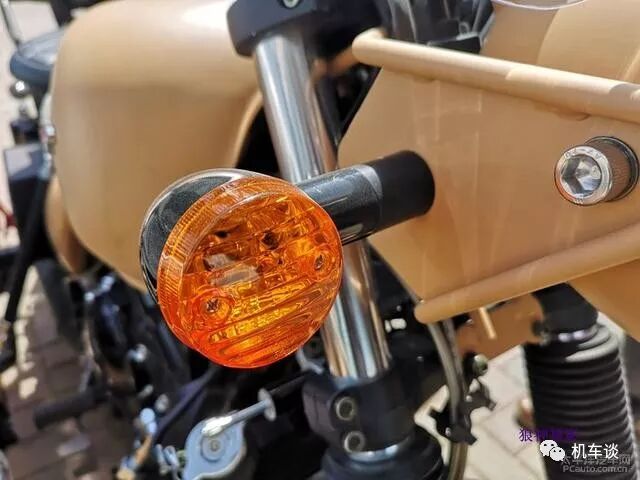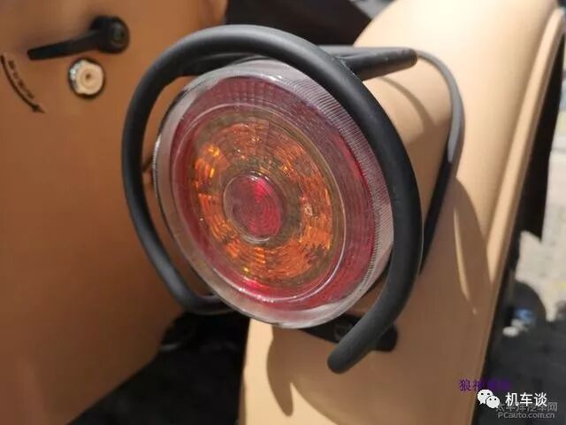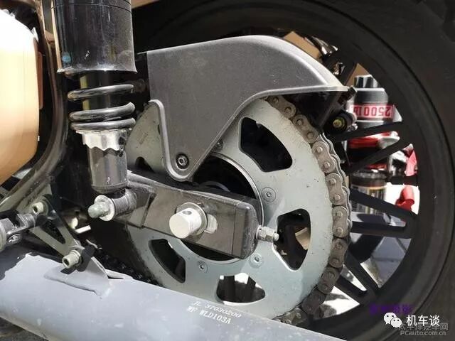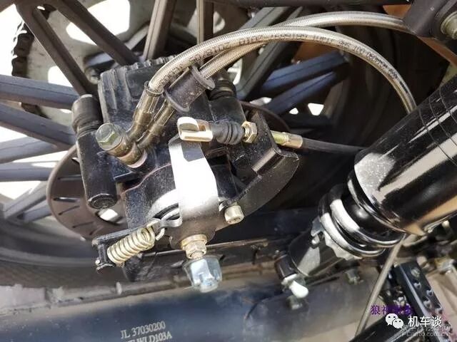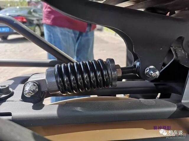 为保留经典后减震形式,厂家重新设计车辆后摇臂。从图片中可以看出后减震器与车架连接处还比较粗糙,后续厂家会对其改进,将采用机械焊接。