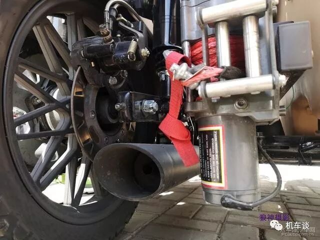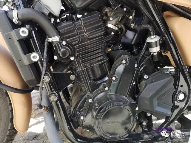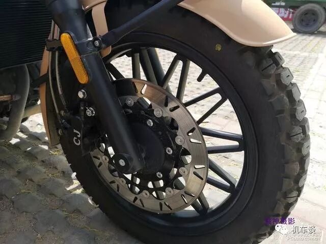 长江750采用KYB品牌减震器,前减震器为正立式并配有防尘套,虽然没有具体参数,但可以看出减震器行程并不长,这也为它带来了仅有160mm得离地间隙。